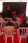 El día, espléndido, ha hecho que los sorianos se acercaran a las casetas, mirando y comprando libros, interesándose por las rutas literarias y, en general, por lo productos que se ofrecen en la Feria. De éxito puede calificarse las representaciones que tuvieron lugar de “La Casa de Alvargonzález”, en el Palacio de la Audiencia. En el programa de actividades, que puede consultarse en este mismo web, puede verse la calidad de los actos programados, arriesgados, pero que este año, segundo de la andadura, van dando sus frutos. Es la Feria del Libro en Soria –Expoesía- tal vez el conjunto cultural más atractivo que programa el Ayuntamiento de Soria. El domingo 26 fue clausurada la II edición de la feria del Libro en Soria. El sábado arribó a la capital el Tren de la Poesía, actividad cultural organizada por la Asociación Los Abedules, realizada por tercer año consecutivo. Ya se habla de la tercera feria, del hermanamiento entre las ciudades machadianas, y de que sea Chile el país invitado el próximo año, por lo que podremos disfrutar de la obra del grandísimo Pablo Neruda. (pulsar sobre las fotos para ampliarlas)
