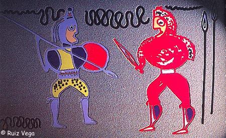 Numancia ha sido, desde siempre, una de las pasiones de Antonio, junto con el mundo antiguo en general, como quedó demostrado en “Los hijos de Túbal”, publicado en La Esfera de los Libros. La otra pasión ha sido el arte, y también se ve reflejada en “Numancia –el imperio que no pudo ser-“. En la nota del autor queda explicado que las láminas que ilustran la publicación pretenden ser “un homenaje a nuestros tatarabuelos, los anónimos artistas numantinos (…) he completado –a mi modo- lo que era fragmentario, interpretado lo confuso y, sobre todo, coloreado lo que era monocromo”. El resultado de este “homenaje no muy respetuoso”, son unas láminas coloristas y deliciosas, descriptivas y alegres, como corresponde a un pueblo que vivía en libertad, rodeado de ríos y vegetación generosa, hasta que los del imperio vinieron a trastearlo todo hasta la aniquilación.
