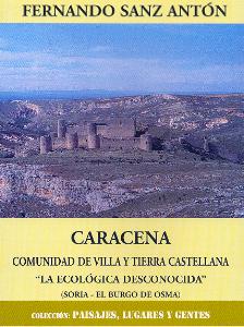En ciento sesenta páginas, con fotos en color, gracias al reciente proyecto de la Diputación Provincial de Soria, Fernando Sanz se ocupa de Caracena, hermosa villa medieval soriana. Sanz Antón, reside desde hace más de cuarenta años en Santa Cruz de Tenerife, donde ejerce su profesorado. Nació en Carrascosa de Abajo y se formó en Madrid. El autor hace hincapié en la historia de la Alta Edad Media de la villa. Describe monumentos y repasa la historia de Carrascosa de Abajo, Ines y Valderromán, así como los despoblados de Aldehuela, Pozuelo, Santa María de Tiermes, San Juan de Adanta, Santa María del Val y Valdegutiérrez. Con todo, la parte más interesante nos parece el capítulo “Caracena, comunidad ecológica”, donde se dan a conocer las encinas milenarias de Valderromán y se proponen varias rutas. Lamentamos no encontrar bibliografía, por si alguien estuviera interesado en ampliar algunos aspectos de este estudio.