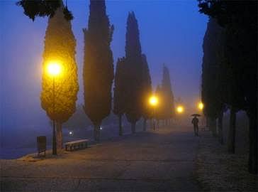 Sobre la vieja villa amurallada, la noche avanza firme y victoriosa. El sol, vencido y exhausto languidece, arrodillado, sobre el campo de batalla. Sus últimos suspiros de vida son caricias de luz, que en la mirada perfilan, tu medieval silueta