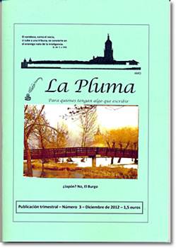 Son dos las sorpresas que nos llegan con la revista La Pluma (Para los que tengan algo que escribir). La primera de ellas es que ya podemos verla en color. La segunda llega en formato digital con el título “Entre plumas” y se trata de apuntes de la revista literaria que hace ya seis años nos acompaña y deleita. En el editorial apuntan los directores: “No es Entre Plumas otra revista, ni tiene formato de tal, simplemente es, como ya hemos dicho, un boletín, breve, para que sea de fácil lectura incluso en su puesto de trabajo, ágil y ameno, con noticias, informaciones, reportajes y otras muchas cosas que les entregaremos en estas nuevas páginas y que no tienen cabida, por diversos motivos, en La Pluma”. Efemérides, citas, rescates del olvido..., todo relacionado con la palabra escrita, la Literatura. En cuanto a la revista, salvo por la introducción del color, sigue el mismo formato. Don Abilio Martínez Varea, el nuevo obispo, es entrevistado por Javier Nicolás. La narrativa corre a cargo de las plumas de Julio Pina, Susana Maroto, Alfonso Bengoechea, Carlos Robredo, Pedro Navazo, Ana Balbás y Beatriz Rincón. La Poesía es de Teresa Frías, Carlos Aranda y Luis Viguera. Opinión, humor, inventos españoles (el botijo) y un largo etcétera completan este número de La Pluma. Echamos de menos las recetas y los cócteles...
