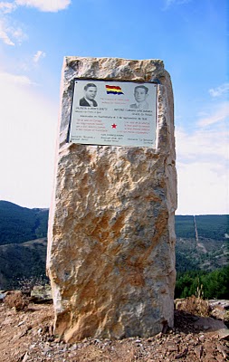 Después, el miedo y el silencio fueron borrando recuerdos, y la Alcarama, las sierras no lloran, cubrió con su manto verde el lugar de la ejecución. Pero la familia de Antonio Cabrero nunca cejó en el empeño de encontrarlos. Primero fue Valentín, el hijo, después Ander Cabrero, el nieto. (¡Qué hermosa y necesaria esa generación de nietos dispuesta a refrendar el amor por los abuelos con la búsqueda y reivindicación de sus restos y de sus ideas!). Al final, y a pesar de tantos kilómetros, preguntas y esperanzas, no se encontraron, pero pusimos un monolito en el monte, en recuerdo de los dos. Justo en el lugar donde gritando su nombre nos pudiera contestar, siempre en silencio, el eco de sus restos perdidos.