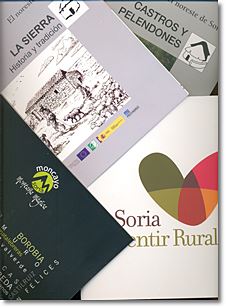 “Sentir Rural” es un conjunto de publicaciones de entre treinta y cincuenta páginas promovido por la Asociación de Desarrollo Rural –PROYNERSO- con la colaboración de la Diputación Provincial de Soria, Caja Rural y UVA Soria, y la financiación de la Junta de Castilla y León, FEADER, LEADER y el Ministerio de Medioambiente y Medio Rural y Marino. Las fotos, ilustraciones e infografías son de César Sanz, Valentín Guisande, Montserrat García, Fernando García, Estela Cacho, Juan Manuel Fernández, Julio Verdú de Castro, Julián de Velasco, Manuel Frías, Sonia Montanell Tramulla, Paleoymas, MAD, Ramón Guillén López, Manuel Sosa Triviño, Santiago Osácar, Ayuntamiento de Ágreda, PALEORAMA, y propias de PROYNERSO. Los textos y compilaciones son de MAD, María Dolores García González, Sonia Montanell Tramulla, Montserrat García Jiménez, Alberto Luque Cortina, Rafael Santa Clotilde Jiménez. Entrevistas de Eva Sánchez. “Soria sentir rural”, “La Trashumancia. Cañada Soriana Oriental”, “Acebales Sorianos”, “Canteras Molineras”, “La huella de Roma”, “Villas de frontera. Historias de La Raya”, “Torreones árabes”, “Gustavo Adolfo Bécquer en Soria”, “Red Natura 2000”, “Sierra del Moncayo”, “Ágreda Villa de las Tres Culturas”, “La Sierra, Historia y Tradición”, “Castros y Pelendones”, son otros tantos cuadernillos donde, a través de texto, fotos, infografías e ilustraciones, lujosamente encuadernados, se da a conocer la riqueza natural y etnológica de una zona despoblada –salvo Ágreda, Ólvega y algunas villas de La Raya- que se va viendo relegada al papel, las fotografías, y la literatura. Una bellísima compilación que toca la sensibilidad, como sólo pueden hacerlo la despoblación, las ruinas y la desolación. Pero, al parecer, no es eso lo que han pretendido los promotores de este conjunto donde, entre ese desamparo, se atisba la esperanza, en especial en los cuadernillos dedicados a la naturaleza o en los espacios todavía muy vivos, como la Villa de Ágreda, y Noviercas.