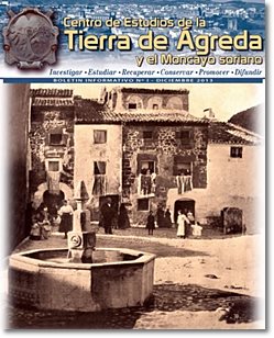 En el año 2014 comenzó la andadura del boletín del Centro de Estudios de la Tierra de Ágreda y el Moncayo Soriano, con el propósito de “investigar, estudiar, recuperar, conservar, promover y difundir” los aspectos históricos, y otros, de esa extensa zona soriana. Los trabajos que aparecen en esta revista, y sus firmantes, son: José Florencio Sanz Córdova para el Editorial. Antonio Vera Mayor, “El Katiuska”; Luis Alonso Mayor para “El ocaso del verano y el otoño naciente”; Consolación Campos Martínez, “El tren de Ágreda”, los tres en la sección de Recuerdos. La sección de Historia corre a cargo de Alice Kadri, Francisco Javier Palacios Moya, Pilar Ruiz Cacho y Manuel Peña García, para los títulos “El Códice Aljamiado”, “La Judería de Ágreda”, “El Motín de Cabarrús” y “Breve Historia de Ólvega”, respectivamente. De la recensión de las publicaciones “Gran guía turística de Ólvega”, “Las cartas del amparo y consejo” y “Visión poética y evocaciones de la infancia”, se ocupa María Reyes Omeñaca Hernández. En el apartado de biografía la del hermano Luis Antonio Aroz, por Pilar Aroz Ibáñez. La sección Lugares para la memoria, con el título “Misión rescate”, a cargo de Milagros Hernández Ruiz y Gemma Manrique Gonzalo. “La apicultura tradicional de Ágreda”, en el apartado de Etnología, la ofrece Félix Vitoria Gómez. Por último, la de Medio Ambiente, “El Canal de San Salvador”, es de Ángel Pérez Gómez. Uno de estos reseñables trabajos, “La Judería de Ágreda”, de Francisco Javier Palacios Moya, se puede leer íntegro en nuestra web, en la actualización de Primavera, 2015.