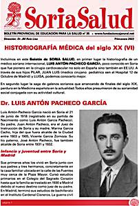 primavera 2022 HISTORIOGRAFÍA MÉDICA del siglo XX (VI) Incluimos en este Boletín de SORIA SALUD, en primer lugar la historiografía de un médico soriano internacional, LUIS ANTÓN-PACHECO GARCÍA, poco conocido en Soria que fue pionero en la cirugía cardiovascular no solo en España sino también en EE.UU. A través de sus hijos PILAR, JUAN LUIS (médico cirujano pediátrico en el Hospital 12 de Octubre de Madrid) y LUISA, podemos conocerlo mejor. En segundo lugar la saga de galenos sorianos que arrancando de finales del siglo XIX, perdura en la Medicina española en la actualidad. Todos ellos presumieron de su sorianidad social conjugada con su actividad cultural. Dr. Juan Manuel Ruiz Liso