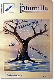 La plumilla es una publicación de La pluma de El Burgo. En este número escriben autores que desde el inicio de las distintas publicaciones alrededor de La pluma, han estado presentes deleitando con sus relatos y poesías a todos aquellos que nos acercamos: Julio Pina, Alfonso Bengoechea, Javier Nicolás, Carlos Robredo, Teresa Frías, Pedro Navazo y dos más de reciente incorporación: Guadalupe Viola y Ángel Cuesta. Puede leerse también una crítica literaria, escrita por Blanca López, sobre el Premio Planeta 2021 “Últimos días en Berlín”, de Paloma Sánchez Garnica. Reproducimos una estrofa del poeta Carlos Robredo y de su poema 'En una tarde de invierno'
