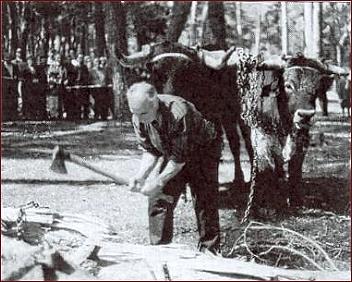 generalmente jóvenes trabajadores del monte que provistos de hachas