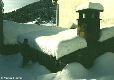 La copiosa nevada caída en el día de la lotería de navidad, ha dejado sobre los campos un tupido manto de nieve, algo que alegra a los mas jóvenes del lugar, que se acercan a la era para intentar construir su muñeco de nieve. El frío de la tarde es tan intenso, que casi llega a paralizar las entumecidas manos de los jóvenes, pero esto no será ningún obstáculo que les haga renunciar de su intención por levantar el muñeco de nieve mas grande que jamás se haya levantado en el lugar, mayor aun que el del año pasado, que parecía haber sido fabricado por algún gigante, incluso se hacen competiciones entre grupos, por ver cual es el que consigue hacer rodar la bola de nieve mas grande.