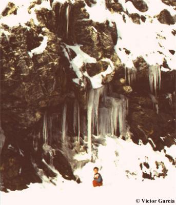 La mañana es fría, una de esas mañanas tan frías del invierno por estas tierras sorianas. Una fría y espesa niebla apenas si nos deja ver el otro lado de la calle. Son las once de la mañana, y todavía no se siente el sonido de las canales, el intenso frío de esta cruda mañana del mes de enero, no deja que las cristalinas gotas de agua que surgen de la nieve que aún permanece sobre los tejados, se deslicen sobre la superficie helada de los trasparentes chupones de hielo, unos chupones que hace ya varios días que se mantienen colgando de los tejados. A pesar del frío ambiente que reina en las calles del pueblo, un grupo de chavales han decidido subir a patinar a la poza (lavadero) de la fuente vieja. A medio camino entre el pueblo y la fuente de las bolas, los chavales se detienen en la fuente del Pilar. El pilón esta cubierto de una gruesa capa de hielo, una capa de hielo a la que las algas que crecen en el fondo del pequeño estanque, le han dado una mayor vistosidad con una amplia gama de tonalidades y colores; verdosos, granates y marrones.