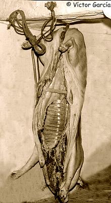 separan las costillas del espinazo; los lomos se sacan de una sola pieza;
