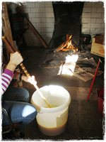 que cuaje. Se vuelca en un recipiente, por ejemplo de madera, de unos