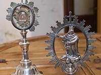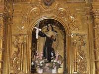 imagen de la santa y la reliquia presidiendo la ceremonia. Frente a