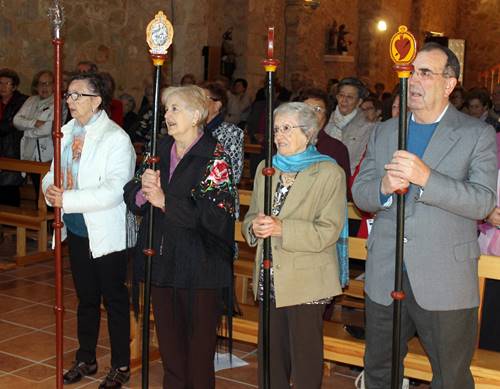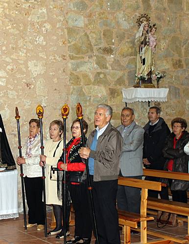 ellas, los cofrades, con sus varas, y las insignias. Después de la misa