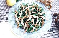 níscalos cortados en laminas lo mas finas posibles, apañamos con la vinagreta y en el