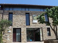 edificio, de piedra, está rodeado de vegetación, y abajo cuenta con un bar