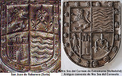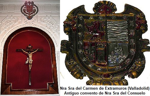Ahora bien los escudos que se encuentran en el santuario de Nuestra Señora del Carmen Extramuros de Valladolid difieren del que acabamos de describir.