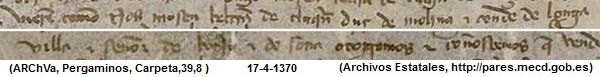 , año 1431, imposible (podría ser 'era 1409' por la coincidencia de Cortes y el error en la titulación, ya que Claquín no fue Duque de Longavilla sino Conde, dándose este error también en la confirmación precedente); y confunde Borja con Vejar.