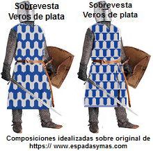 Adjuntamos la imagen de una sobrevesta, capturada en la página web de espadasymas.com, retocada para que aparente ser de azul y veros de plata (y no al contrario); tan sólo para dar una idea de a qué nos referimos. Componemos una sobrevesta siguiendo el diseño indicado por Ferrand Mexía en "Nobiliario Vero" (1492) para los veros, y otra con diseño más actual; pero insistimos en que tan sólo se pretende aclarar que el infante don Ramiro no lució dichos veros en una sobrevista sino en una sobrevesta o sobreveste.