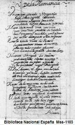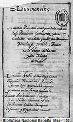 Así pues esta vez hemos hecho una inspección del texto que consta en la obra en verso, en esa "La Numantina" correspondiente al manuscrito Mss-1103 de la Biblioteca Nacional de España.