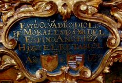 Escudo de los MoralesEncima del arco un escudo sostenido por unos ángeles ostenta las armas de este linaje; las mismas que figuran también en los cuatro escudos que hay en los arranques de la crucería de su bóveda.