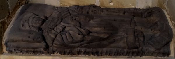 En ella existe un nicho con una figura yacente con gorreta, ropón y espada