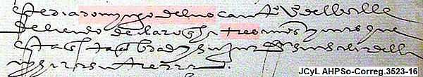 En la ciudad de Soria, a doce días del mes de Octubre de mil y seiscientos y diez y seis años, en presencia y por ante mí Miguel Navarro, escribano del rey nuestro señor y del número antiguo de la ciudad de Soria, y testigos yuso escritos, parecieron presentes: