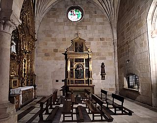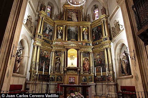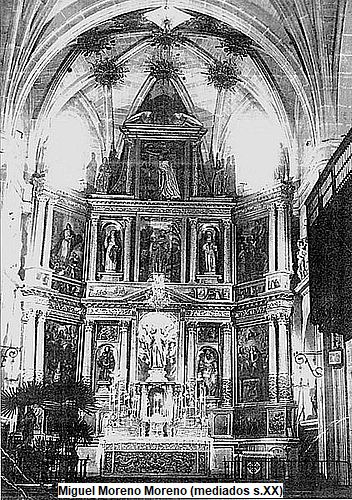 - Ítem. Con condición que en los tableros del dicho retablo donde dice bultos del señor don Bernardo y mi señora doña Teresa, se haya de hacer una caja honda, de suerte que puedan estar los bultos de rodillas desenfadados e inclinados al Santísimo Sacramento.