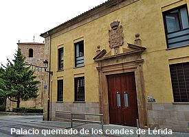 En ocasiones ese palacio de los Torres que cita Rabal se identifica como el palacio quemado de los condes de Lérida; sin embargo, creemos que eran dos casonas diferentes; la casa a la que alude Rabal sería la Casa de la Torre, que era la ubicada frente a la parroquial de Santo Tomé (hoy día Plaza Condes de Lérida nº1 y 2), y el Palacio Quemado sería el de la calle Caballeros junto a la parroquial de San Juan de Rabanera (hoy Caballeros nº18). (2- Palacio quemado)