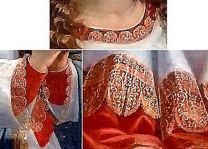 Y la dicha señora doña Teresa con saya grande y gorguera, y la cabeza como el dicho don Bernardo quisiere, y su jarra de flores delante, y lo demás como el dicho señor don Bernardo ordenare.