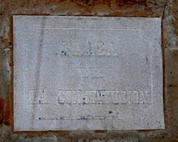 1836, 21 de Septiembre. En el Ayuntamiento se lee un oficio del Jefe Político en el que dice que por una Real Orden fechada en este año 1836 se dispone que en todos los pueblos de la nación se ponga una lápida en la plaza pública con la inscripción de Plaza de la Constitución