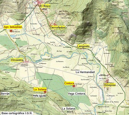 Ahora bien, el objetivo de este artículo no es la evolución administrativa de la zona, sino el referirnos a Aldeanueva, Cintora, La Solana y San Sebastián, lugares despoblados que se ubicaron en lo que hoy día abarca ese citado término municipal de El Royo; enclaves que no constan ni en el Padrón de 1270 ni en la Concordia de 1352.