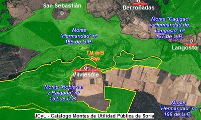 Apoyando esta opinión, en la comprobación de los ámbitos de los Montes de Utilidad Pública actuales de aquellos lugares hermanados vemos cómo no parece lógico que don Nuño Sancho y doña Marquesa hubieran excluido a San Sebastián, en caso de haber estado poblado en el siglo XIV, del goce de la dehesa que donaron al resto de los lugares de aquel contorno.