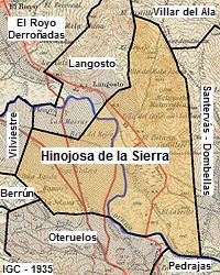 Como se puede observar Hinojosa no linda con Aldeanueva, lo cual puede deberse a que ya se hubiera despoblado, o que al igual que El Royo y Derroñadas se ubicara más allá de los términos de Langosto y Vilviestre, pero en las proximidades de aquella dehesa de cuyos aprovechamientos gozaban dichos lugares.