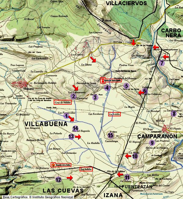 (sic). Así pues, si se considera que en las cartografías utilizadas hasta finales del siglo XX el único paraje denominado La Velilla se ubica al Sur de Villabuena, y las majadas de ese nombre que hay en su entorno se encuentran tan cerca de Villabuena como lo está la ermita de Santa Eulalia, no existía ninguna base sólida para situar el despoblado medieval en las inmediaciones de esa ermita.