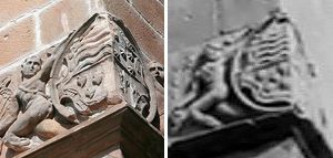 La fotografía de Cabré Aguiló (1911-1917) permite observar en la portada plateresca el letrero que el duque de Ahumada, en su circular de 28 de Junio de 1846 dirigida a los Jefes de Tercio, mandaba colocar de manera bien visible en la fachada de todas las casas-cuartel: (Rec.1846,p.410)