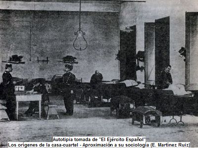 Reproduciremos algunos párrafos de Martínez Ruiz ("Los orígenes de la casa-cuartel..."), autor que define estos establecimientos como una casa de vecinos organizada militarmente