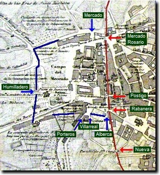 · y por Solano el camino que viene de dicha Puerta de Santa Clara y Calaverón a terminar a la dicha plazuela y calle que sale a ella.