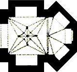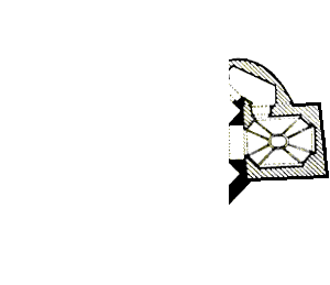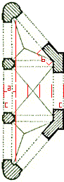 1La planta gótica indicada por este autor (fig.2) ha sido considerada como la procedente de la obra que se llevó a cabo en 1552, año que se toma como el de construcción del Humilladero. Sin embargo, se puede apreciar cómo el exterior orientado al Norte (al Paseo del Espolón; abajo en el croquis) no guarda relación con el orientado al Sur (a la Alameda); esta diferencia se debe a rellenos posteriores, que si los eliminamos de la planta nos presentará un diseño simétrico conforme al arte (fig.3).