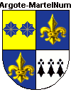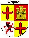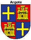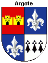 es en quarteles. En el primero y quarto dos Estrellas de oro, en cada uno en campo de sangre, y en los otros dos una Flor de Lis cada uno de plata en campo azul, aunque Argote de Molina las pone diferentes...