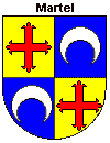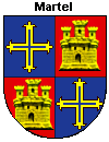 Martel hace referencia a los cuarteles designándolos 'mano derecha' y 'mano hizquierda', siendo la única ocasión en que hace esta observación, por lo que debe referirse a la posición de quien ve los escudos. Sin embargo el escudo que hay en la fachada de la iglesia de La Merced, tiene la disposición de cuarteles que describe Martel literalmente, si bien las cruces son treboladas.