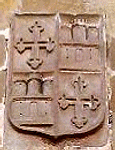 Cuartelado en cruz: 1º y 4º: trae de gules castillo de oro. 2º y 3º: trae de azur cruz de oro, trebolada y vaciada o flordelisada.