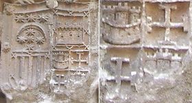 Rueda 1632: Cuartelado: 1º y 4º cruz hueca flordelisada; 2º y 3º luna menguante.