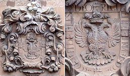 Ruedas 1598 y 1743: Águila negra en campo de plata. Bordura de ocho castillos de oro sobre rojo.