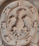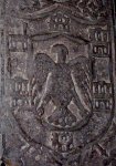 Rueda 1632: Águila siniestrada. Bordura de ocho castillos.