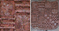 Presentamos un escudo ubicado en uno de los retablos de la iglesia de San Juan de Rabanera, y una lauda sepulcral que se halla a sus pies, que se asemejan al de este Linaje.