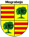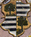 escudo cuarteado. Primero y cuarto con tres fajas negras en campo de plata, dos y tres un moral verde en campo de oro.