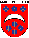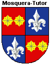 Tutor copia mal, y enrevesa, la primera versión de Mosquera, determinando el campo como de sangre y dejando el campo azul para la segunda versión, en la que, al ser un escudo cuartelado carece de sentido lo que escribe; sentido que sí tendría como otra versión del primer escudo.