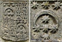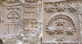 Rueda 1632: Luna menguante; cinco estrellas de ocho puntas formando cruz; y otras tres encima