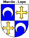 cuartelado en cruz: 1º y 4º: Trae de azur menguante de plata. 2º y 3º trae de gules cruz trebolada (o flordelisada) vaciada, de oro.