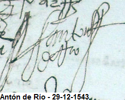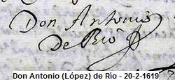 Antonio López de Río (2º), que fue Depositario general de Soria y corregidor de Carmona, (hijo natural del dicho Antonio López de Río y Baltasara de Mostajo). Firma omitiendo el López
